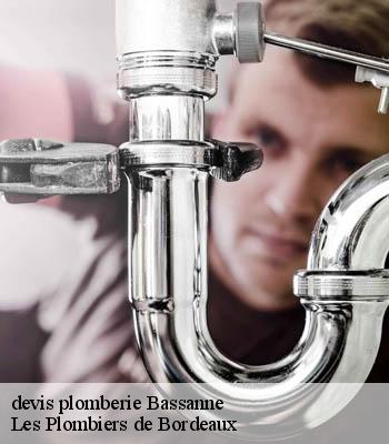 Si vous avez des problèmes de plomberie et que vous habitez dans la ville de Bassanne ou dans les environs, contactez notre société Les Plombiers de Bordeaux. Que vous ayez des problèmes de plomberie dans les toilettes, la cuisine, les salles d’eau… Nous offrons un service fiable pour corriger vos problèmes. Notre équipe est formée d’artisans très compétents. Elle assure à chaque fois des services de qualité. À propos des travaux concernant votre plomberie, la société peut vous établir un devis travaux de plomberie. Soumettez votre demande et vous recevrez le document par courrier électronique.