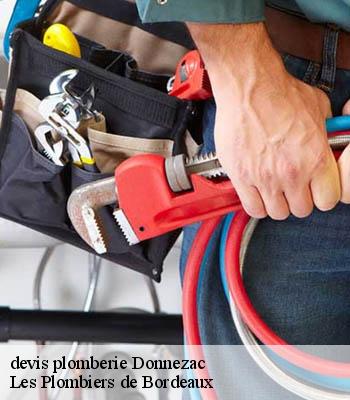 Si vous avez des problèmes de plomberie et que vous habitez dans la ville de Donnezac ou dans les environs, contactez notre société Les Plombiers de Bordeaux. Que vous ayez des problèmes de plomberie dans les toilettes, la cuisine, les salles d’eau… Nous offrons un service fiable pour corriger vos problèmes. Notre équipe est formée d’artisans très compétents. Elle assure à chaque fois des services de qualité. À propos des travaux concernant votre plomberie, la société peut vous établir un devis travaux de plomberie. Soumettez votre demande et vous recevrez le document par courrier électronique.