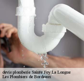 Pour tous travaux à propos de plomberie de cuisine ou de salle de bain, contactez l’artisan plombier Les Plombiers de Bordeaux. Il a suivi différentes formations dans ce domaine et peut répondre à vos besoins pour les travaux dans ce domaine. Comme il a plusieurs années d’expérience, il est efficace pendant chaque intervention afin de ne pas bouleverser votre quotidien. Si vous résidez à Sainte Foy La Longue ou dans les environs, n’hésitez pas à contacter le plombier. Il peut vous établir le devis plomberie en moins de 24 heures. Ce document est gratuit pour tout le monde.
